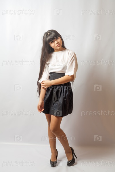 Молодая женщина в черной юбке. Портрет азиатской женщины