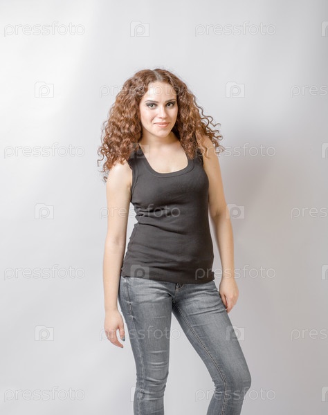 Кудрявая брюнетка на белом фоне