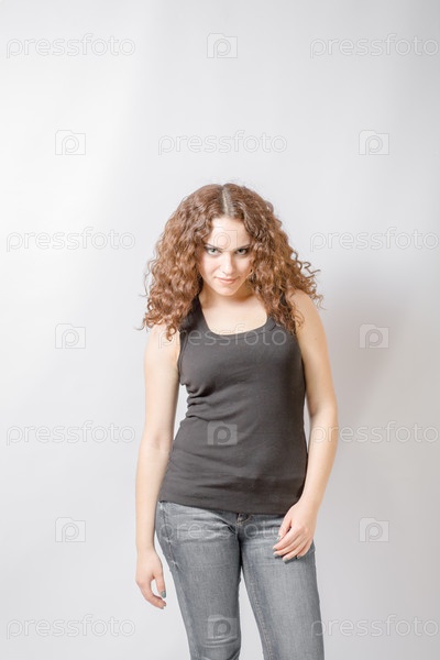 Кудрявая брюнетка на белом фоне