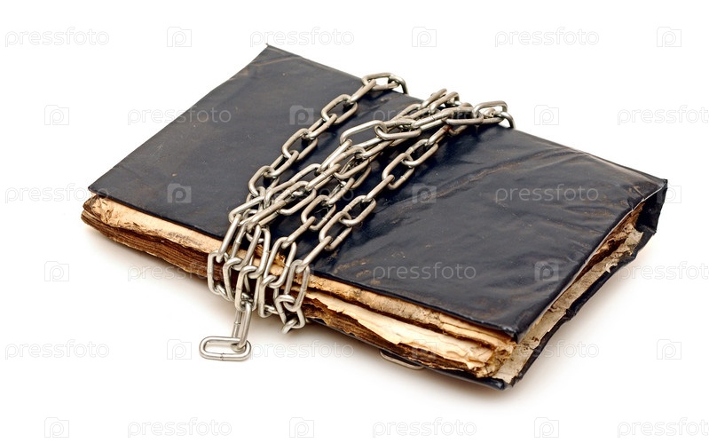 Старая книга с цепью, изолированная на белом фоне