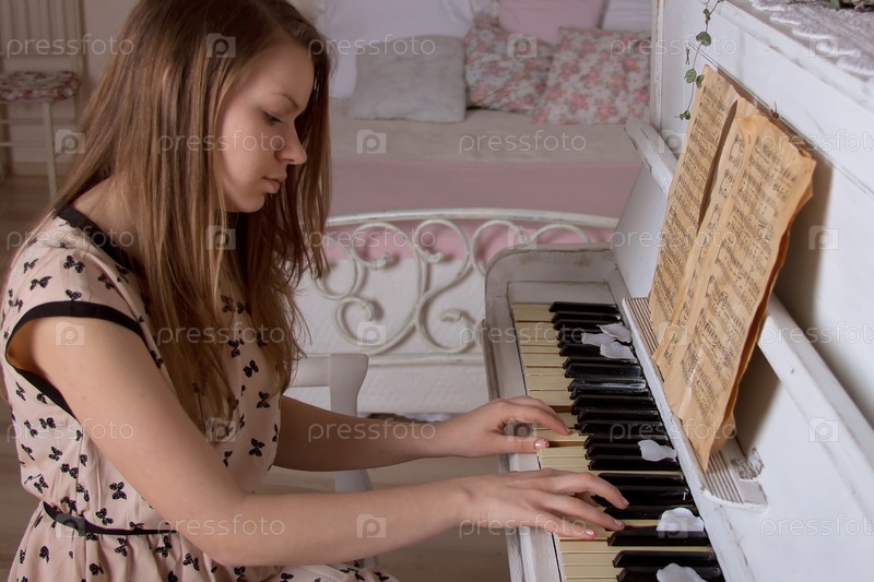Молодая женщина играет на пианино