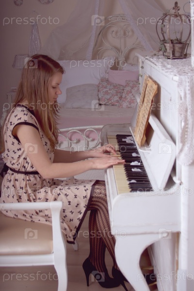 Молодая женщина играет на пианино