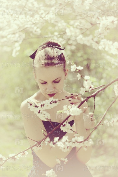 Женщина и цветущее дерево