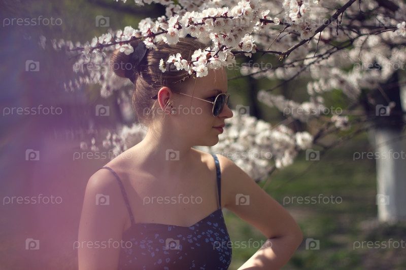 Женщина и цветущее дерево