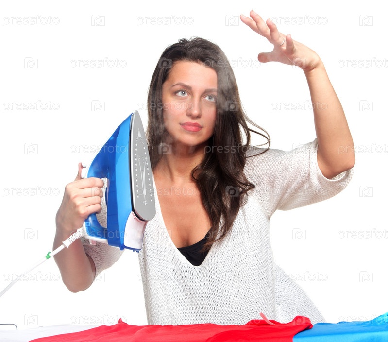 Женщина, гладящая белье