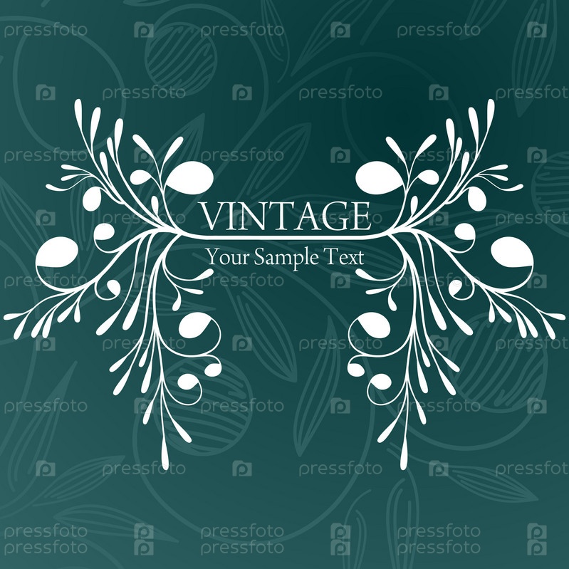 Винтажный бэкграунд зеленого цвета с изящным белым узором по центру