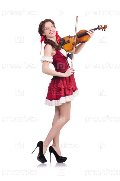 Женщина со скрипкой, изолированная на белом фоне