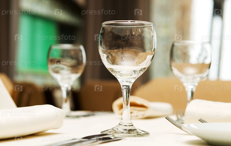 Бокалы под вино на сервированном столе