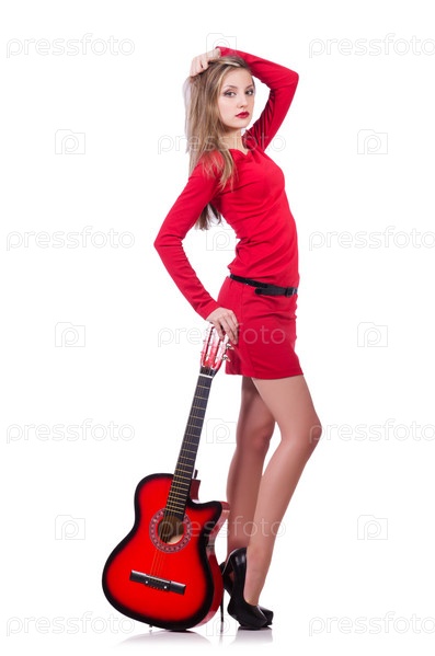 Гитаристка, изолированная на белом фоне