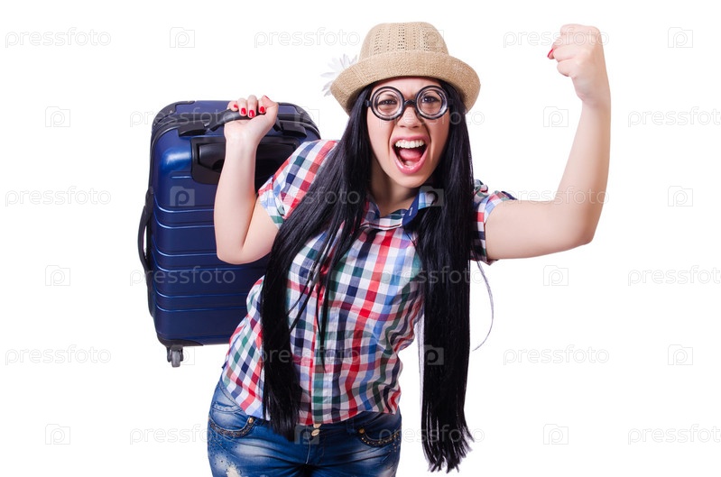 Молодая женщина готова к летним каникулам на белом фоне