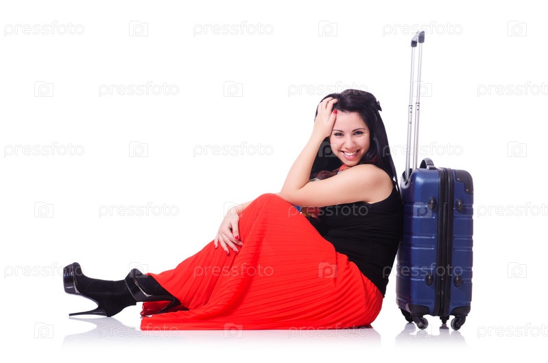 Молодая женщина готова к летним каникулам на белом фоне