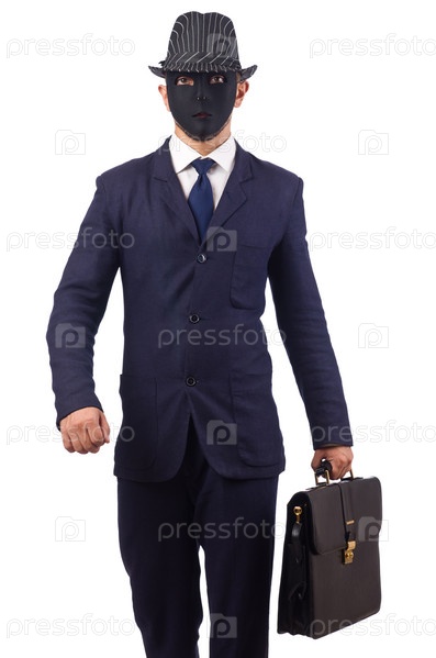 Человек с маской, изолированный на белом