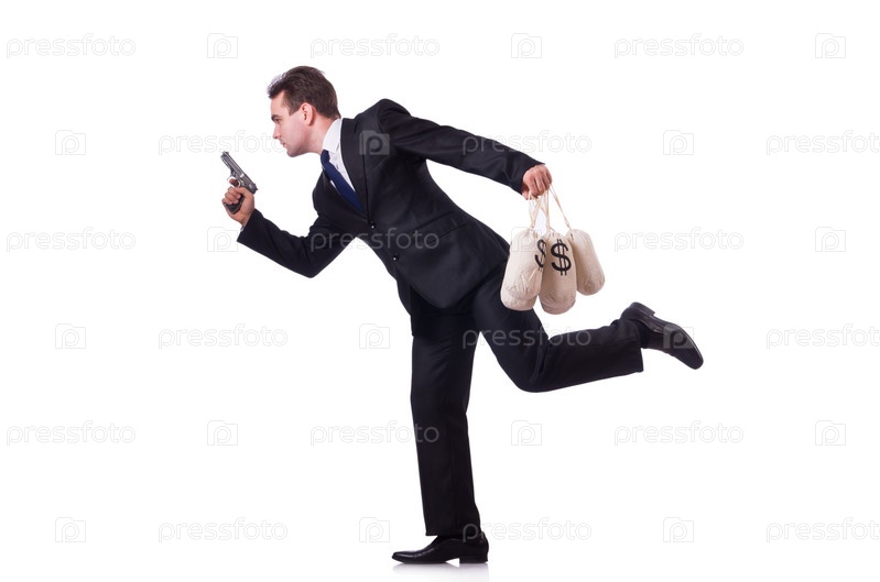 Мужчина с пистолетом и мешками денег