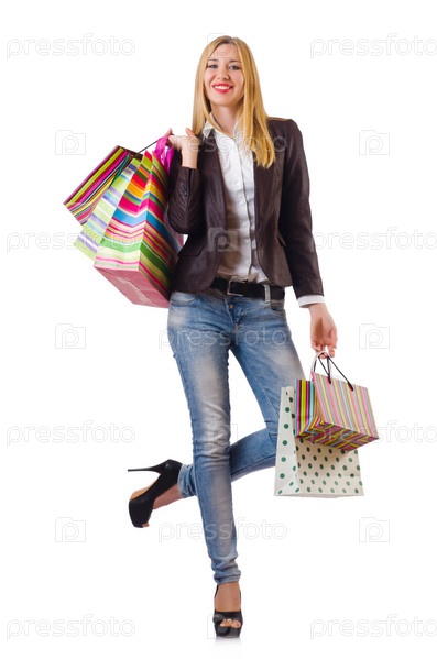Молодая женщина с пакетами после шопинга