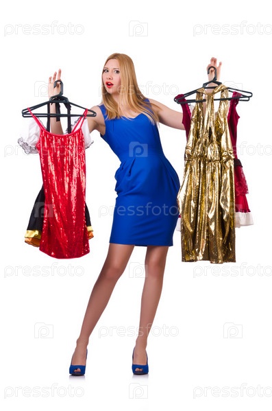 Женщина с одеждой на вешалках