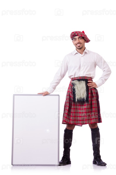 Шотландец с пустым баннером на белом