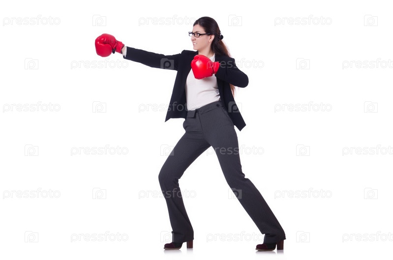Бизнес-леди в концепции бокса на белом фоне