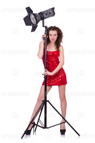 Модель в студии на белом фоне