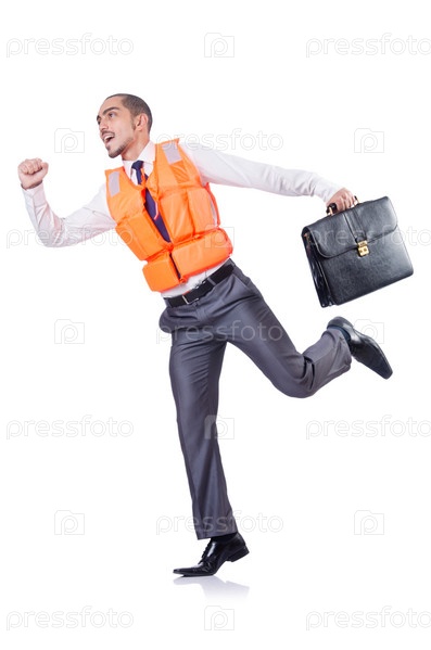 Человек в спасательном жилете, изолированный на белом