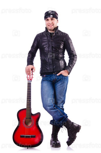 Гитарист, изолированный на белом фоне