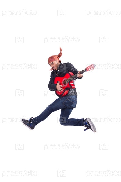Гитарист, изолированный на белом