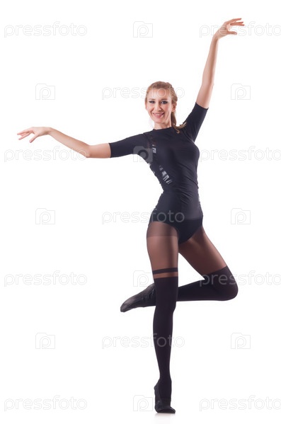 Женщина танцует, изолированная на белом фоне