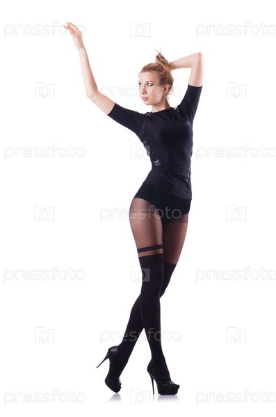 Женщина танцует, изолированная на белом фоне