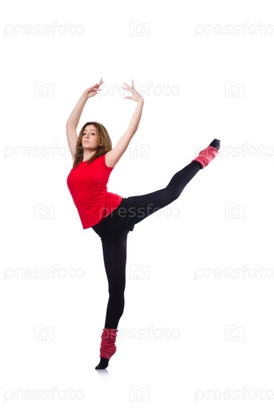 Молодая гимнастка тренируется на белом фоне