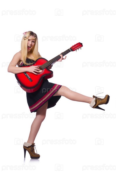 Гитаристка, изолированная на белом