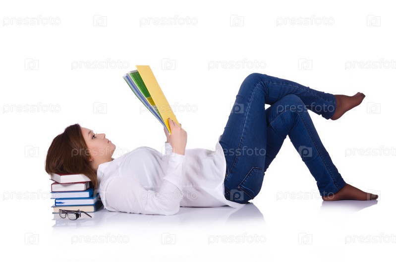 Студентка с книгами, изолированная на белом