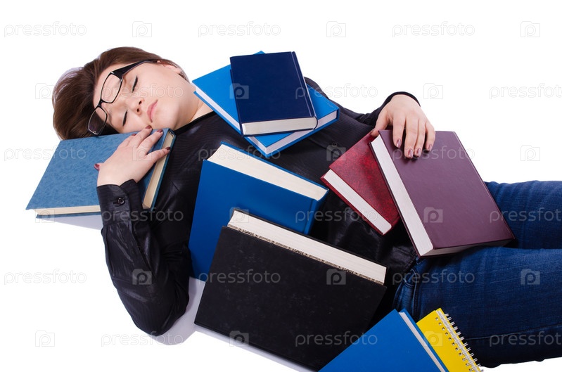 Студентка с книгами, изолированная на белом