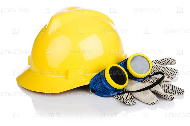 Каска и инструменты, изолированные на белом