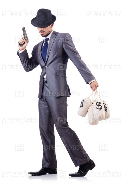 Бизнесмен преступник с мешками денег