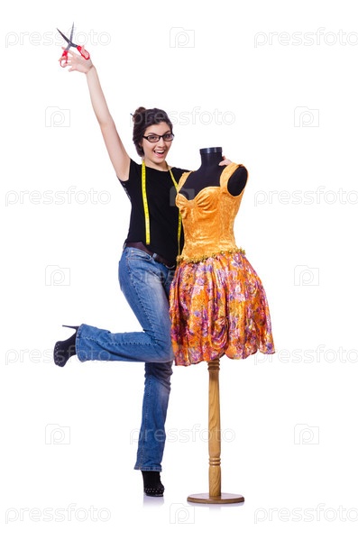 Женщина портной, изолированная на белом