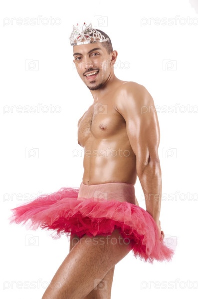 Мужчина в пачке на белом фоне