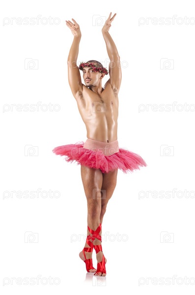 Мужчина в пачке на белом фоне