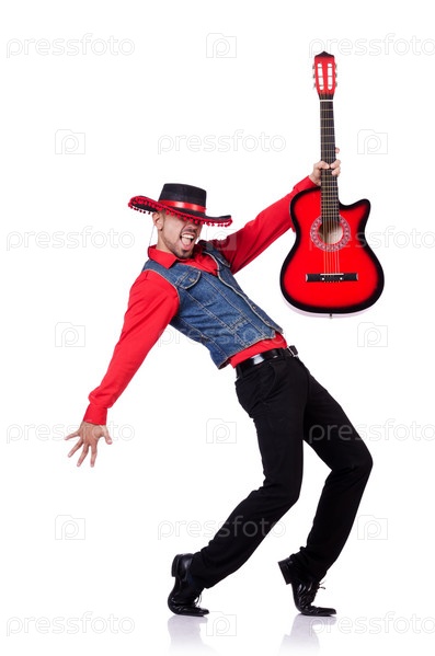 Гитарист, изолированный на белом