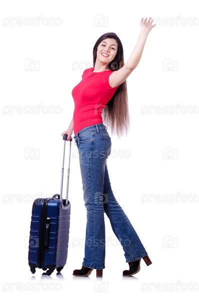 Молодая женщина готова к летним каникулам на белом фоне