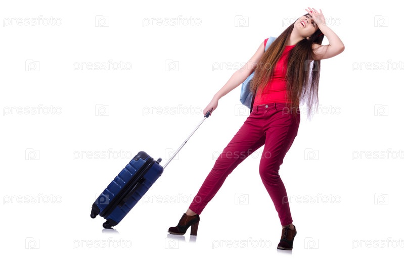 Молодая женщина готова к летним каникулам на белом фоне