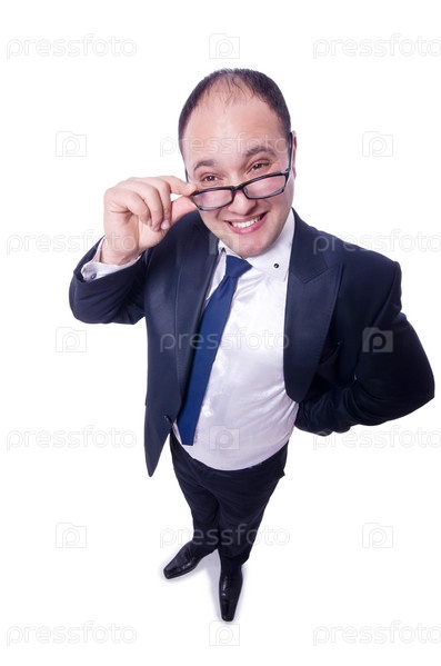 Смешной бизнесмен, изолированный на белом