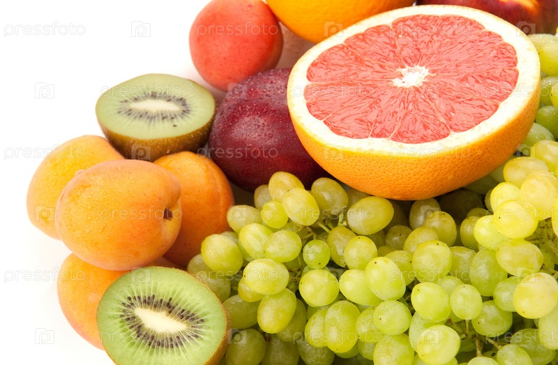 Различные фрукты на белом фоне