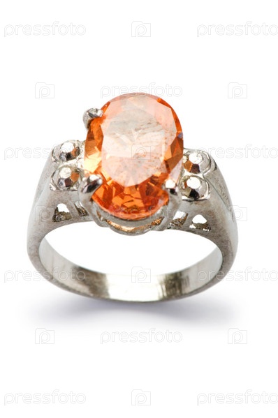 Серебряное кольцо на белом фоне