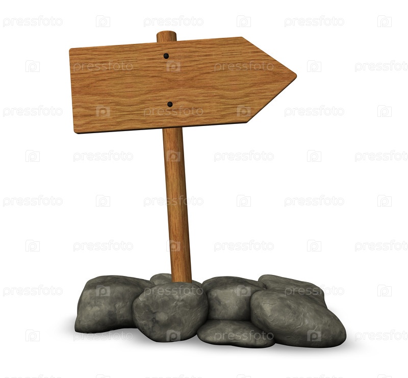 Деревянная табличка и камни на белом фоне - 3d иллюстрация