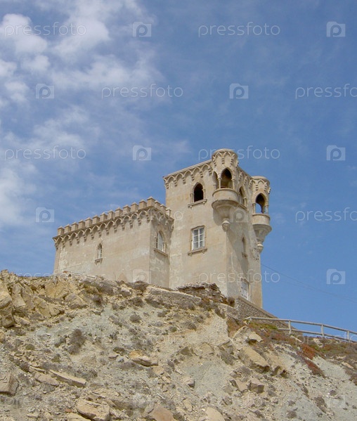 Замок на скале мыса Марроки между Атлантическим океаном и Средиземным морем, Испания