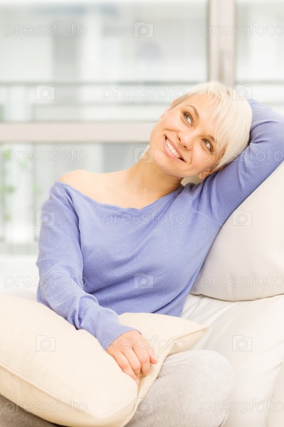 Симпатичная улыбающаяся женщина на диване