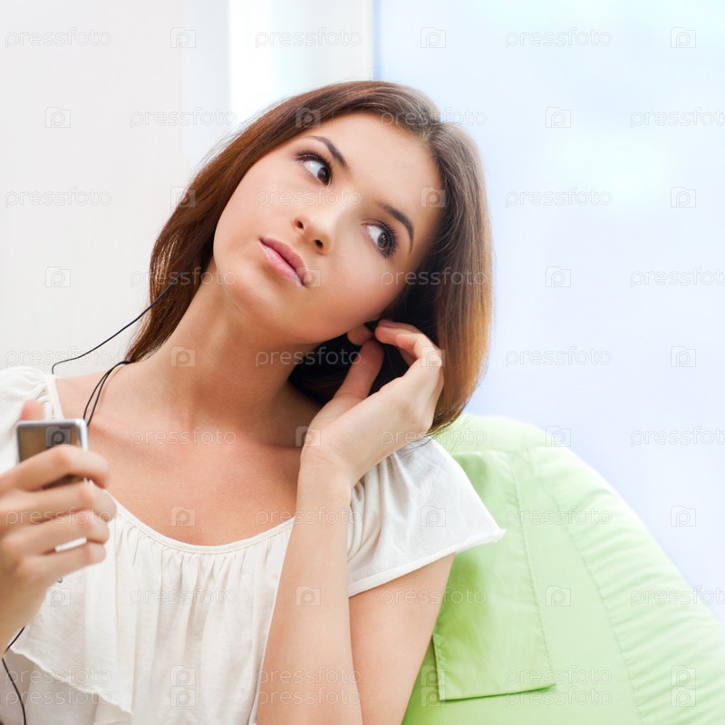 Женщина наслаждается музыкой в спальне
