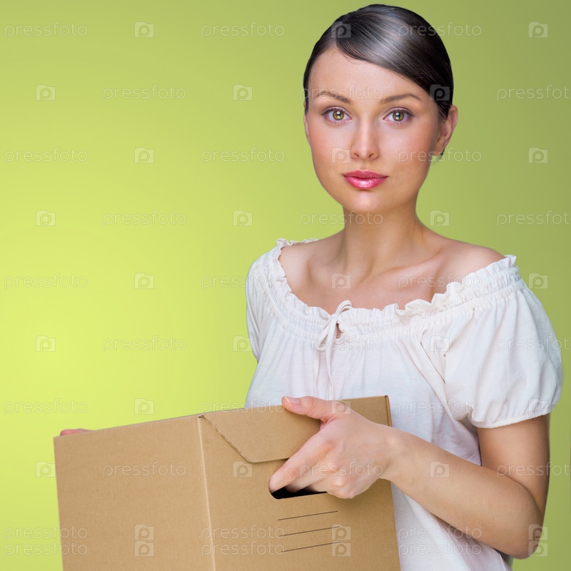 Портрет молодой женщины с коробками
