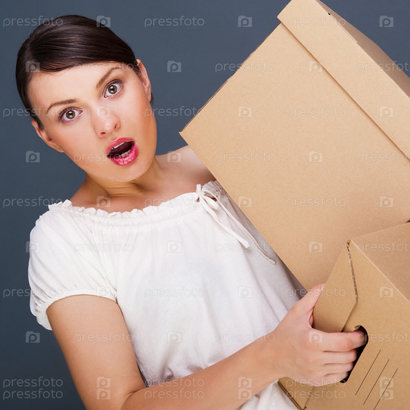 Портрет молодой женщины с коробками
