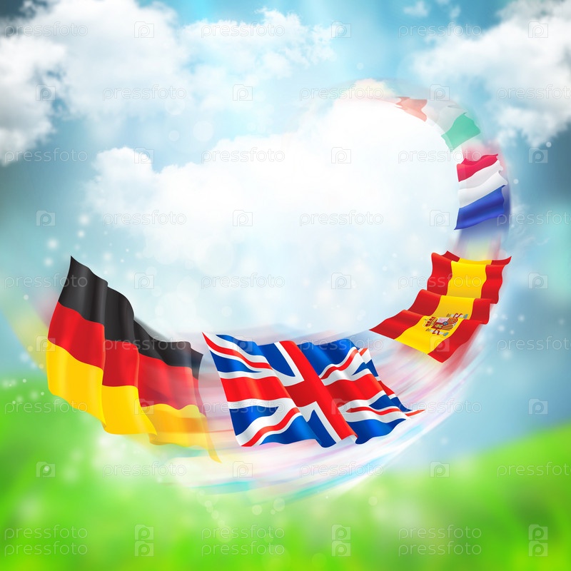 Европейские флаги. Концепция международного образования, путешествий и бизнеса
