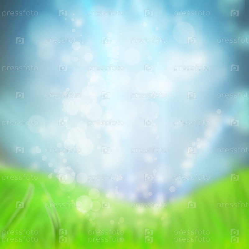 Весенний или летний абстрактный фон с травой на лугу и голубым небом